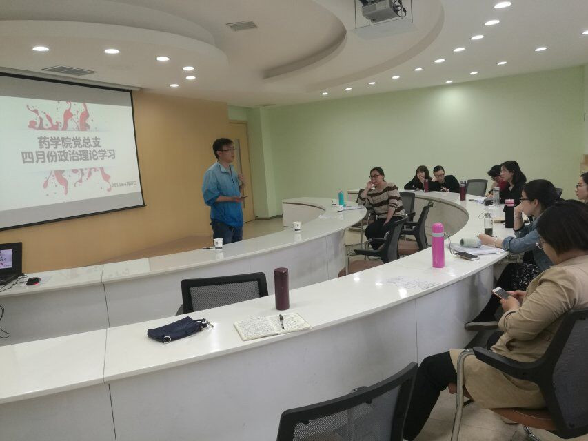4月27日下午,我院在行政楼第一会议室开展4月份政治理论学习,学习内容为听总书记讲《共产党宣言》。会议由药学院党总支书记李印省主持,药学院全体党员教职工参会。