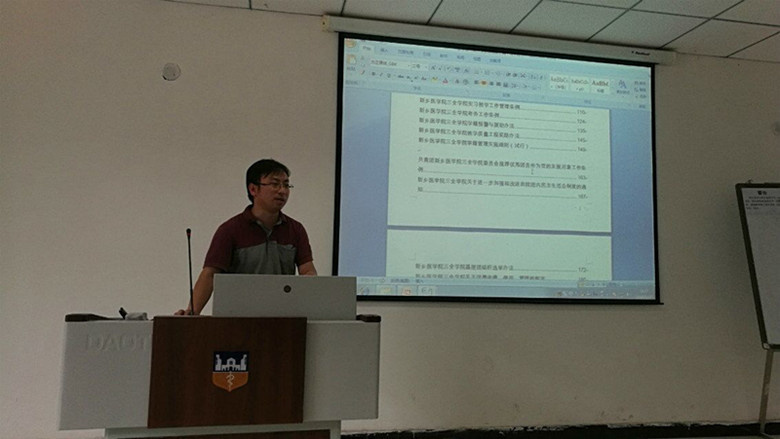 随后,李书记带领着大家着重学习了我院《新乡医学院三全学院调、停课管理规定》、《新乡医学院三全学院教学竞赛类活动奖励办法(试行)》、《新乡医学院三全学院预试讲制度》、《新乡医学院三全学院考试违规处理办法》、《新乡医学院三全学院优秀教师评选与奖励办法》、《新乡医学院三全学院学士学位授予工作实施细则》等制度文件。除了集中学习外李书记还要求会后自我学习,要求所有教职工在会后要结合自己的时间学习学校下发其他相关文件。