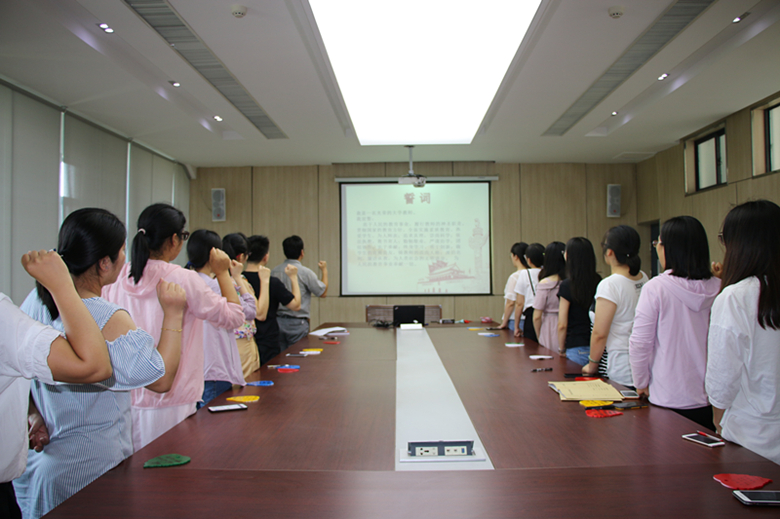 6月28日,药学院全体教师在基础楼A408及药学院活动大厅开展“加强党风廉政建设 树立良好师德师风——宣誓大会暨“警语智慧树”活动。