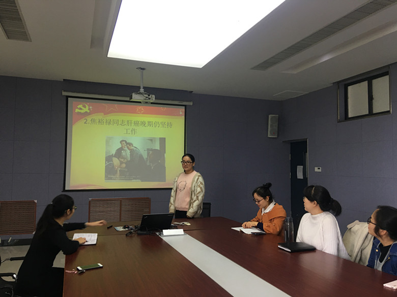 随后,药学院第一支部书记娄晓月同志向我们讲述了《北京密云一位母亲把丈夫和5个孩子送上前线》的故事,1937年七七事变之后抗日战争全面爆发,在民族危难之际,北京密云县一位名叫邓玉芬的母亲,把丈夫和5个孩子送上前线,他们全部战死沙场。然而英雄妈妈的苦难并未在一年后消弭,小儿子在饥饿和病痛中死在邓妈妈的怀里。这位普普通通的中国农村妇女,为了抗击日本侵略者,无私奉献了六位亲人的生命,她的故事在密云、丰宁和滦平地区广为流传。她的讲述生动形象,讲到动情处,许多党员教师红了眼眶。接着教师们又互相分享了《红军长征“半床被子”》、《焦裕禄同志肝癌晚期仍坚持工作》等红色故事。