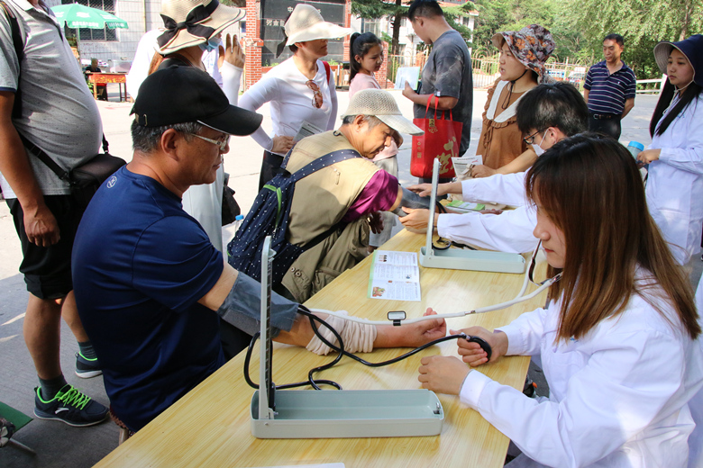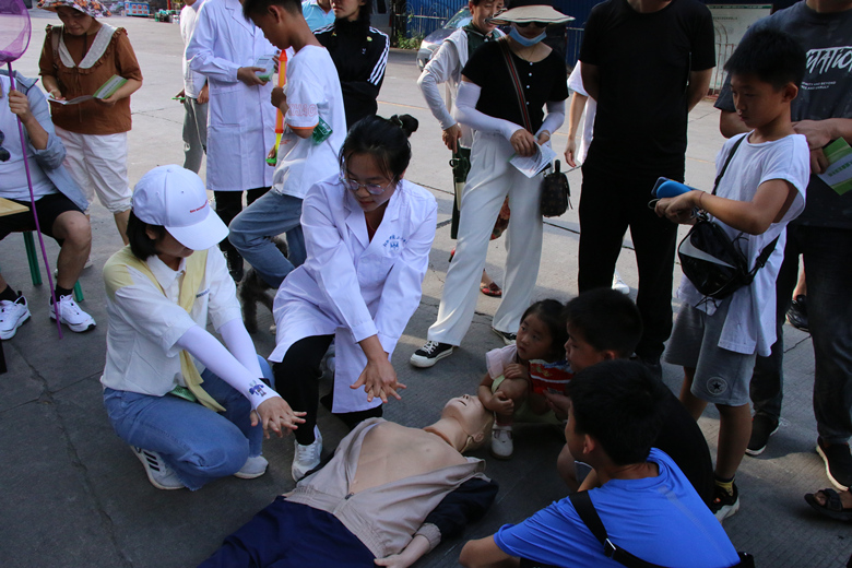 活动由李长正教授、药学院专业教师和书院辅导员老师组织,学生党员及志愿者参加,此次宣讲活动分为血压测量、心肺复苏和海姆立克急救法演示。活动伊始,当地居民和游客即踊跃参与血压测量,带队老师和志愿者们在测量的同时结合专业知识讲解血压的日常管理,进行用药指导,帮助群众认识理解高血压,做好健康管理。