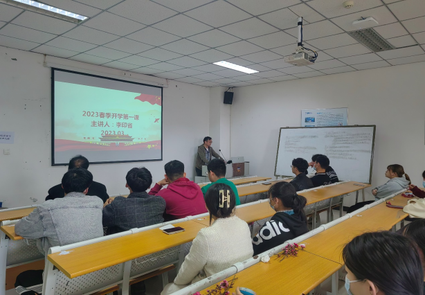3月20日下午,药学院2023年春季学期开学第一课在基础楼C423举行,药学院院长李长正和药学院党总支书记李印省为学院学生讲授,参与此次授课学生为2019级药学药剂专业本科学生。