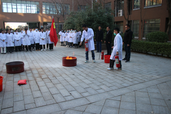 为加强药学院药物研究中心实验室安全管理,预防安全事故发生,确保教学、科研工作安全有序开展。1月3日下午,药学院举行了消防安全演练,包括实验室安全知识培训、消防逃生演练和灭火演练活动。药学院院长李长正教授和药学院党总支书记李印省出席本活动。本次消防安全演练由党委保卫部杨旭钟老师主讲,由药物研究中心王梦琳主持,学院师生共80余人参加了此次培训。