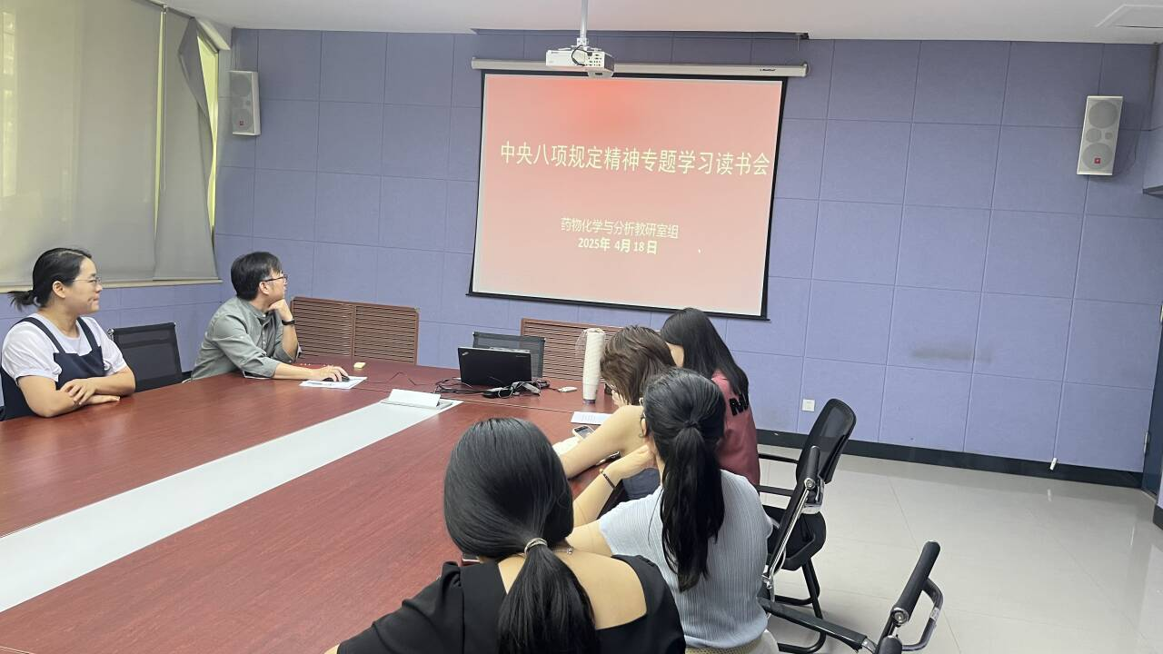 2025年4月18日10点,药学院党总支药物化学与分析教研室组进行了中央八项规定专题学习,学习以小组形式进行,药物化学与分析教研室组学习人为李印省、秦晶晶、赵媛、王梦琳、赵茜、王钰。