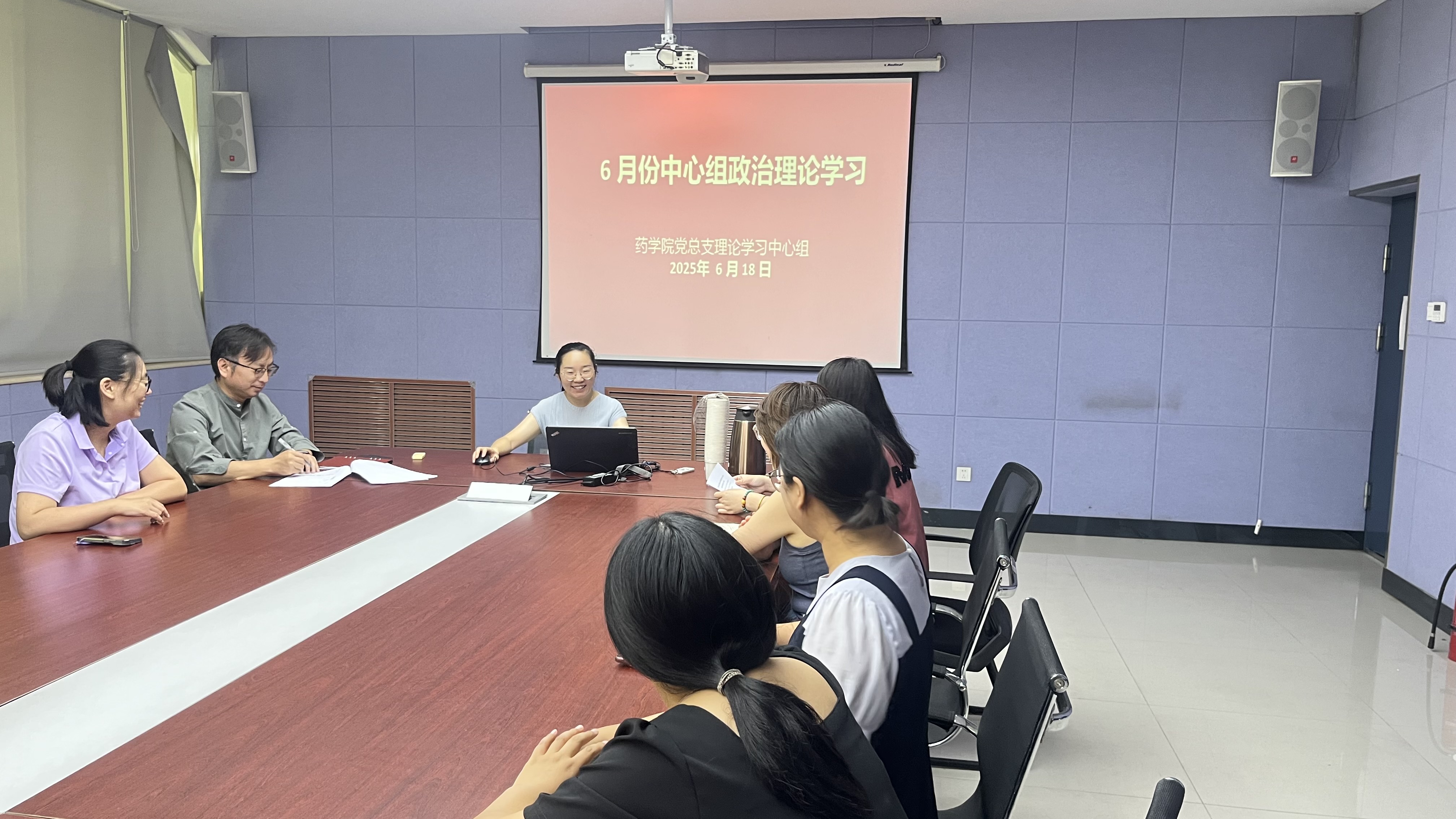 6月18日,药学院党总支理论学习中心组于四楼会议室进行6月份政治理论学习,药学院党总支书记李印省及侯盼盼、秦晶晶等中心组其他成员参与学习,会议由药学院党总支书记李印省主持。
