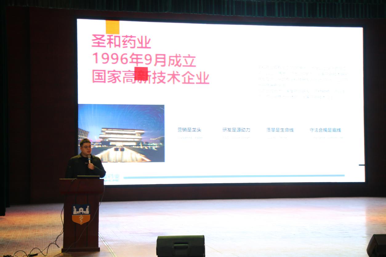 10月23日,国家高新技术企业圣和药业走进豫北医学院药学院,在学院报告厅开展专场宣讲招聘活动,药学院各年级药学相关专业学生及就业指导教师参与本次活动。