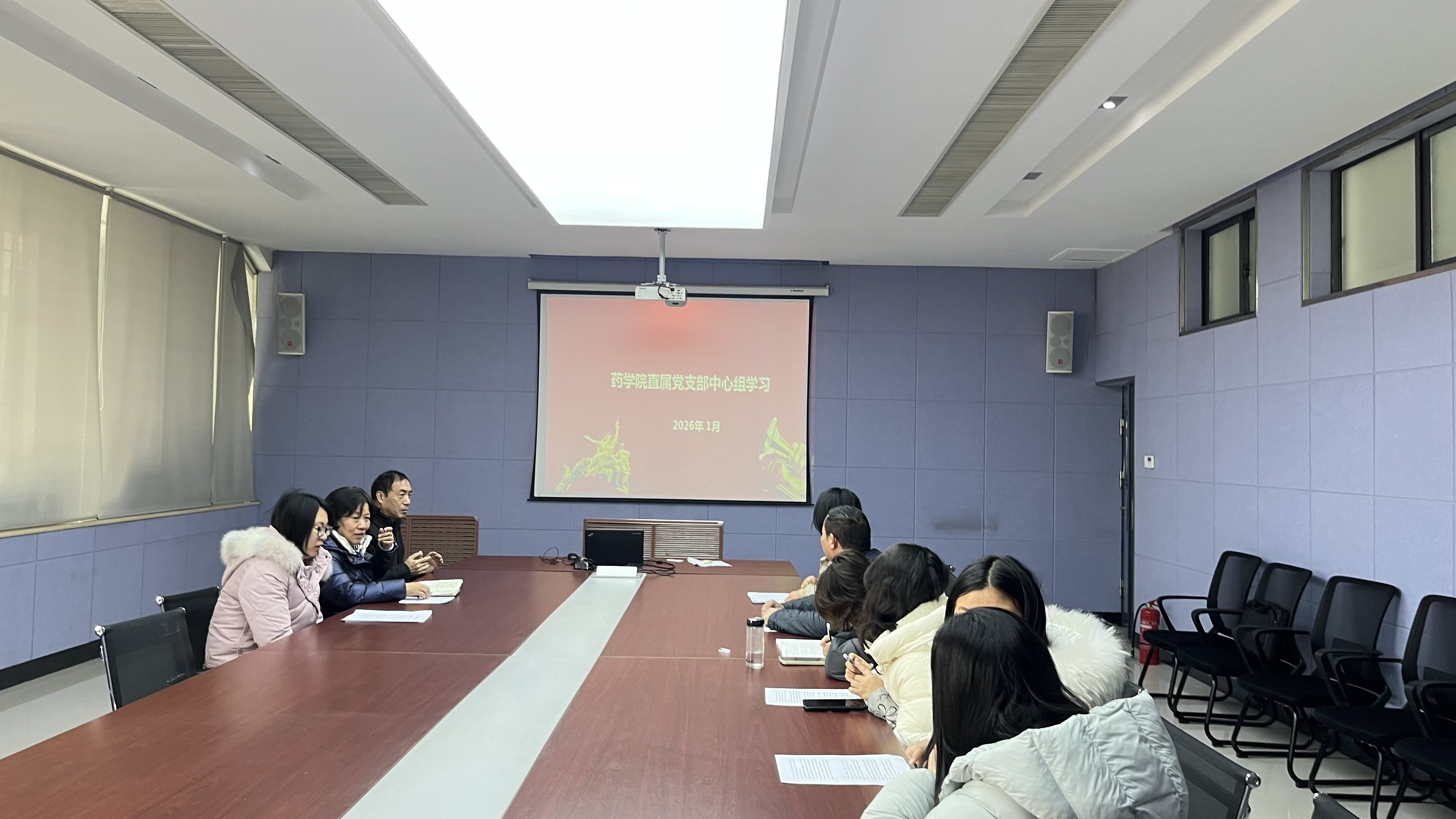 1月23日,药学院直属党支部理论学习中心组于四楼会议室进行1月份政治理论学习,药学院直属党支部书记马引连及药学院院长李长正、副院长马矜烁、娄晓月、苏慧慧等中心组其他成员参与学习,会议由药学院直属党支部书记马引连主持。